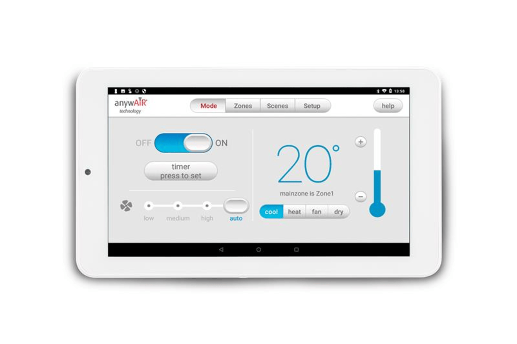 Touchpad Mounted portrait or landscape to the wall by Nice Air the anywAiR technology ducted zone controller is the central point from which to operate your Nice Air Ducted System and can also be used to manage a variety of Android apps such as weather, recipes, music and other home automation apps.